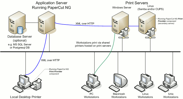 and providing services to end users. PaperCut NG/MF uses the Application Server model to provide abusiness logic